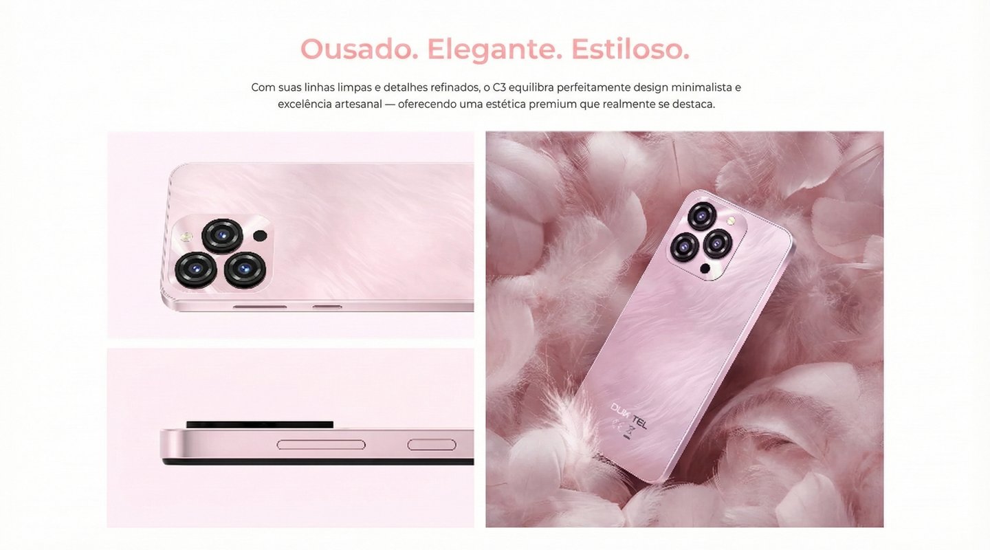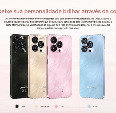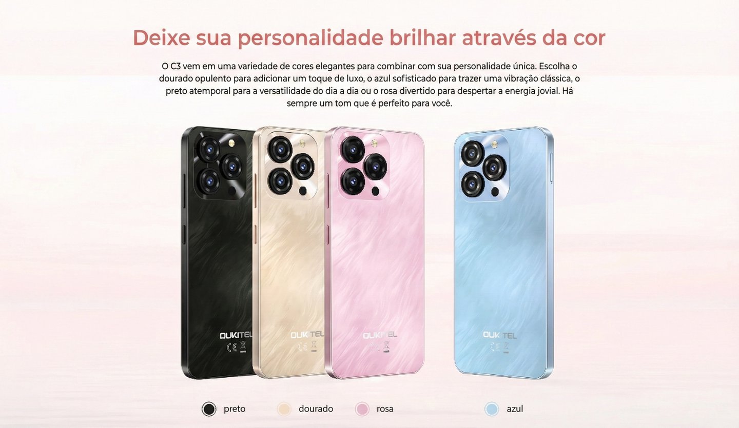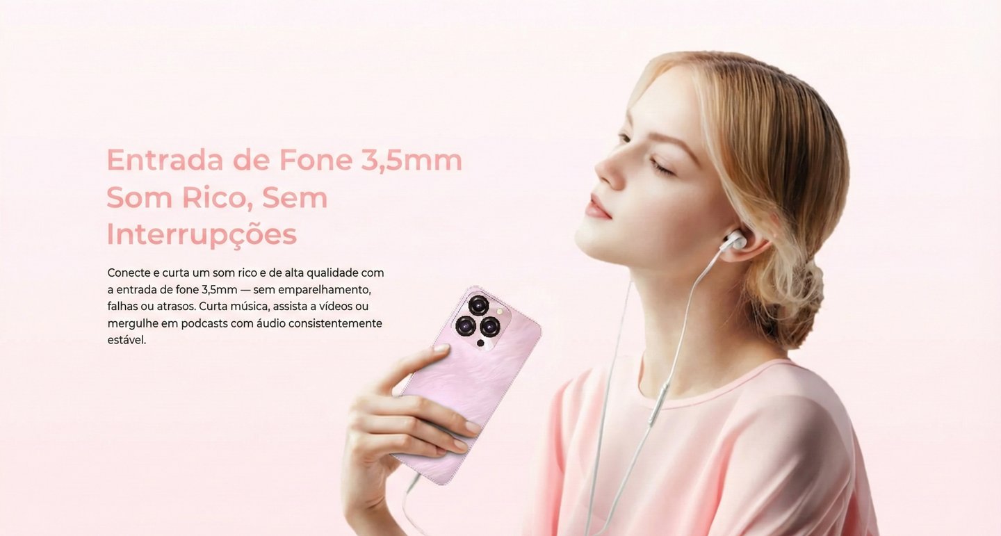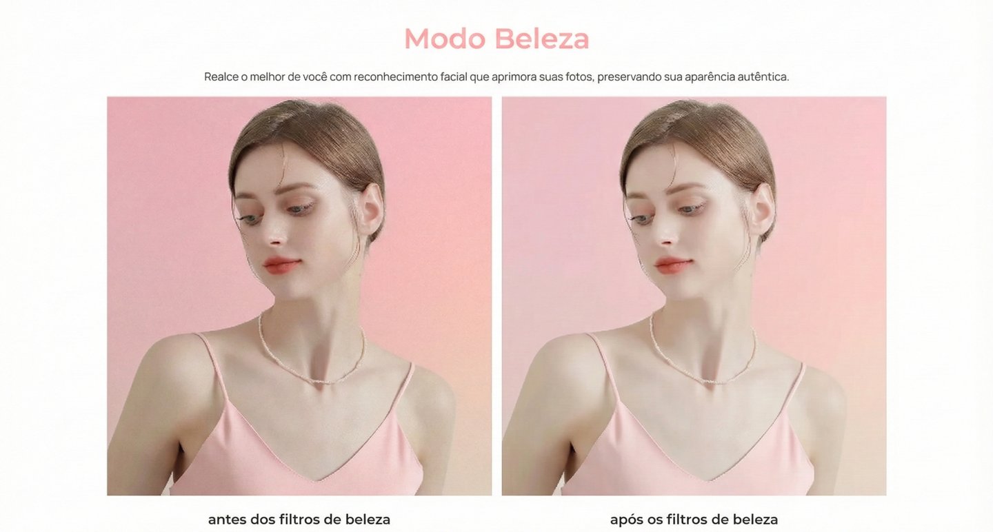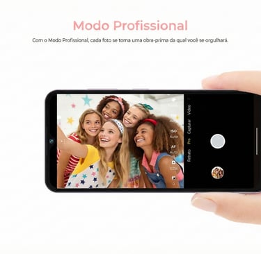 ✔ Câmera traseira de 13 MP + câmera frontal de 5 MP