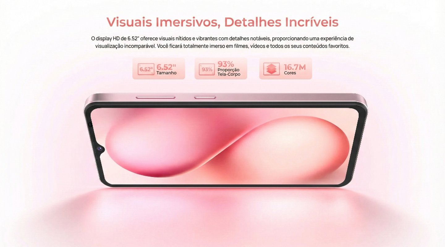 ✔ Processador Unisoc T310 - 1x 2.0 GHz – Cortex-A75 + 3x 1.8 GHz – Cortex-A55