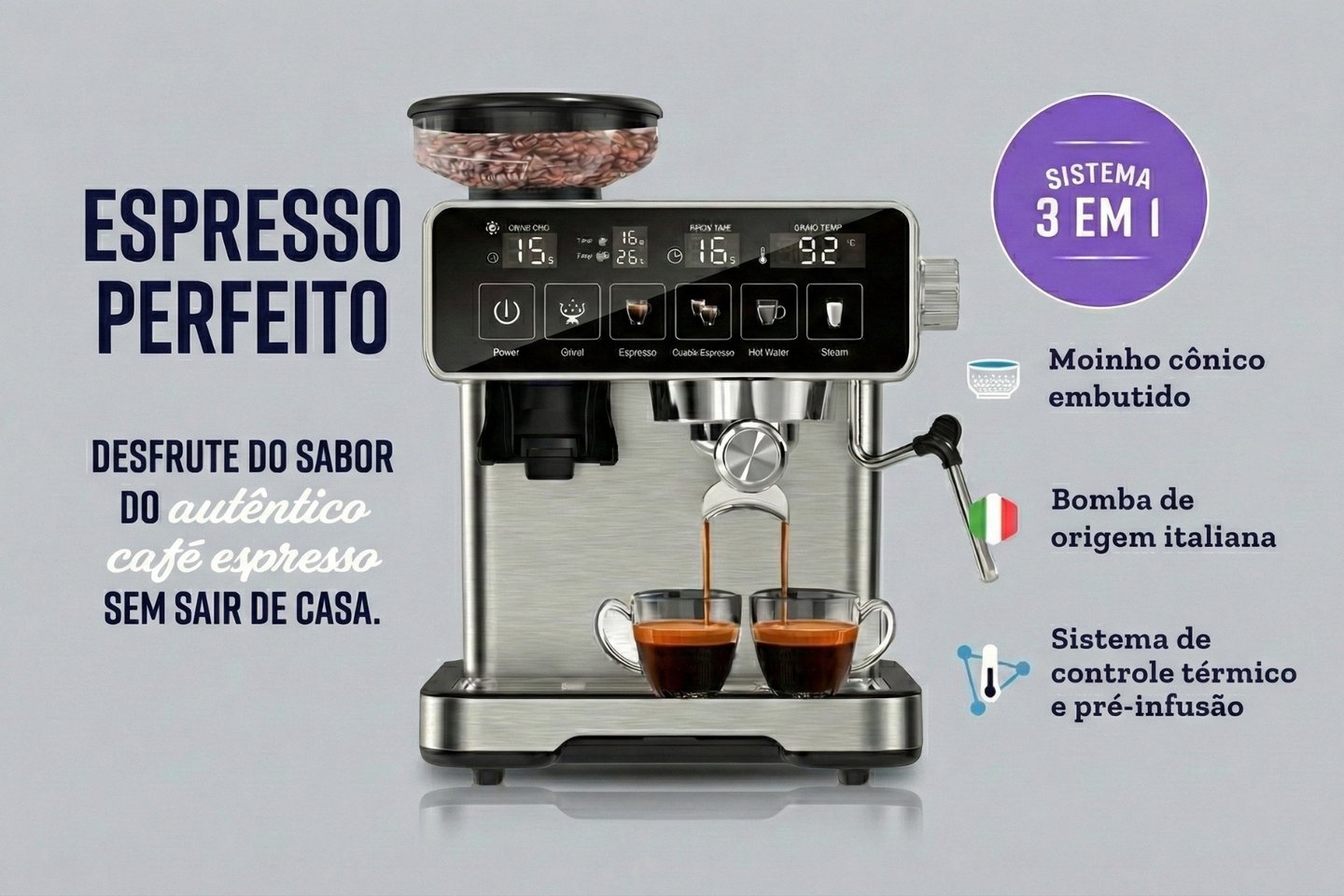 ✔ Compatível com café em pó ou café em grãos