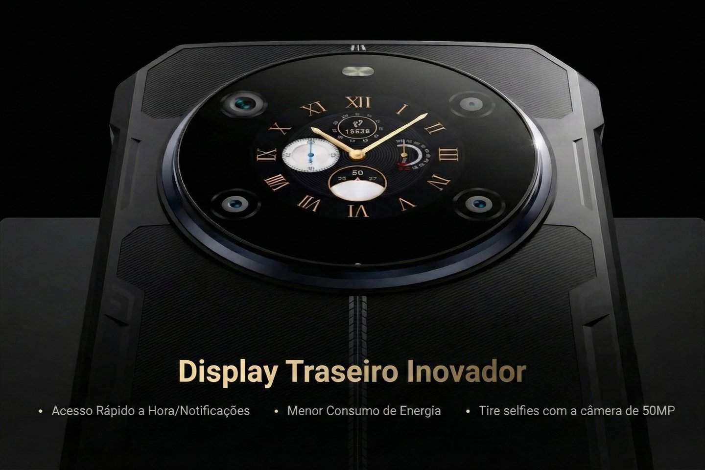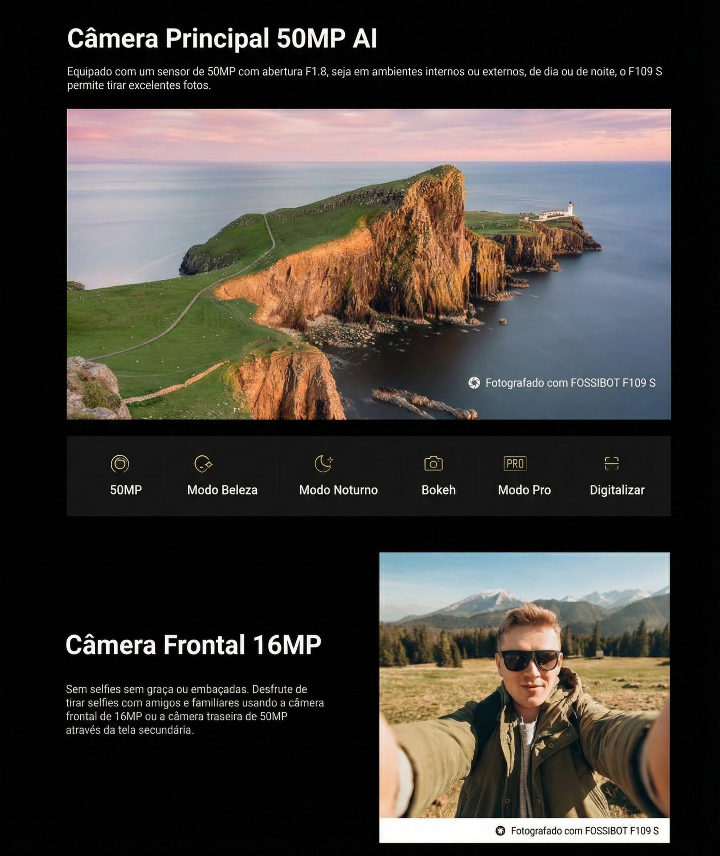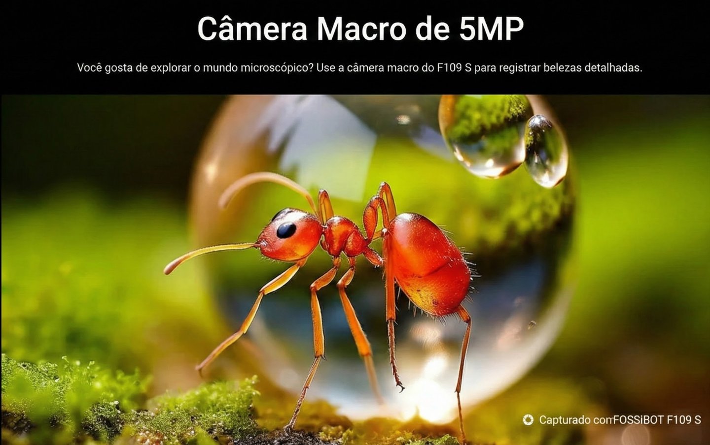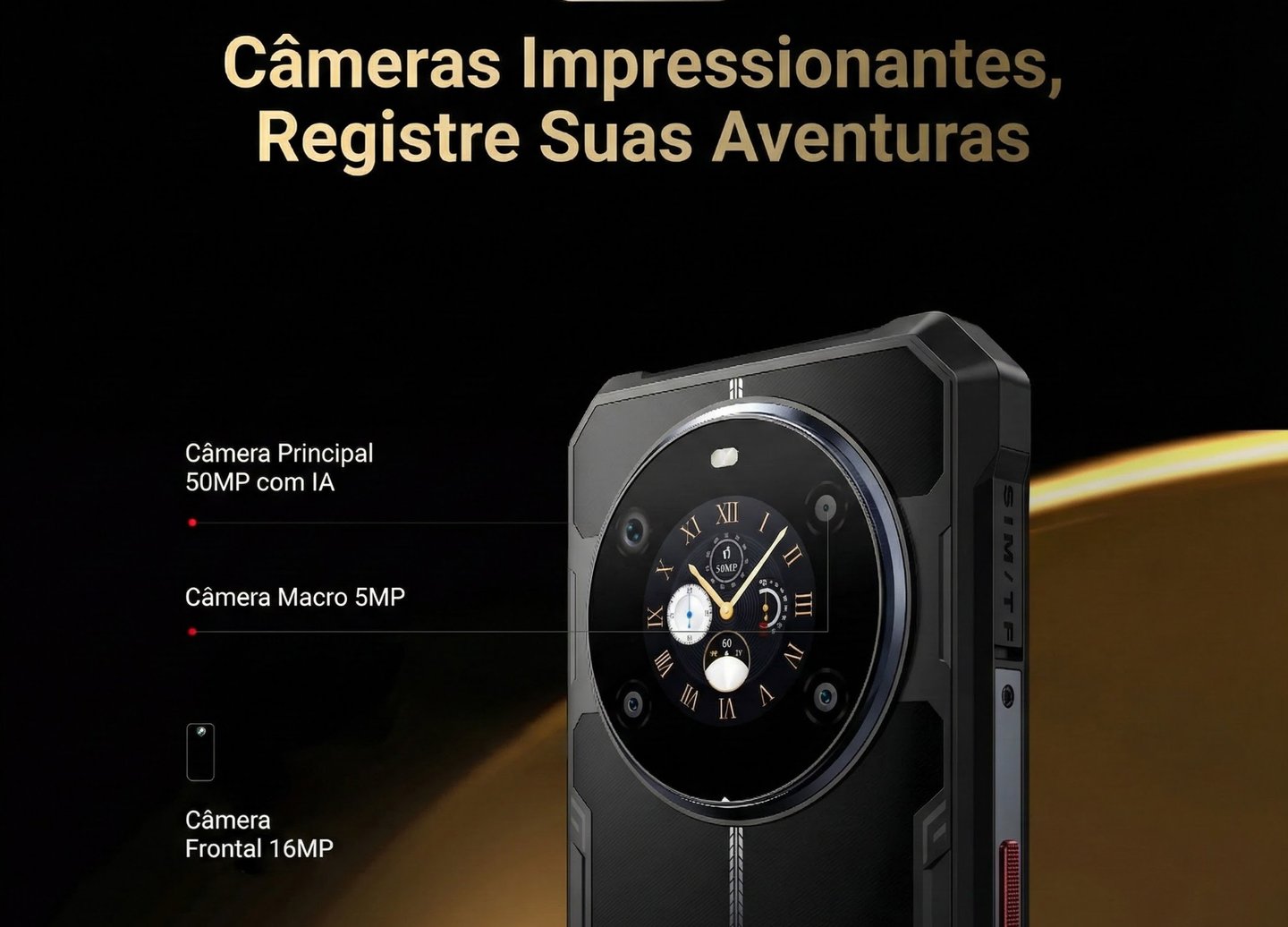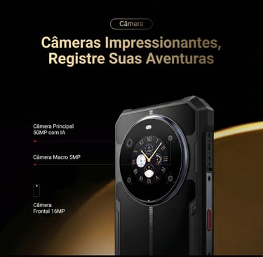 ✔ Câmera traseira de 50 MP + câmera frontal de 16 MP + câmera macro de 5 MP