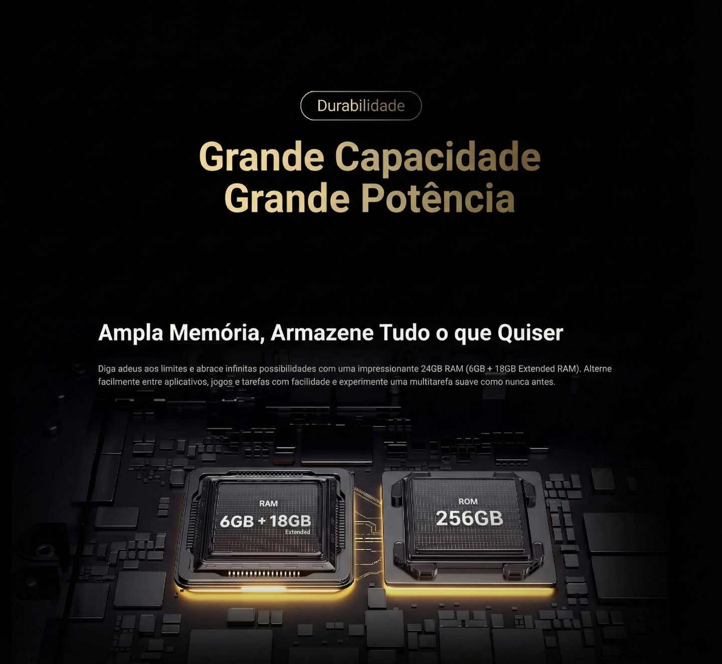 ✔ 24 GB de RAM (expansível até 16 GB com cartão microSD) / LPDDR4X