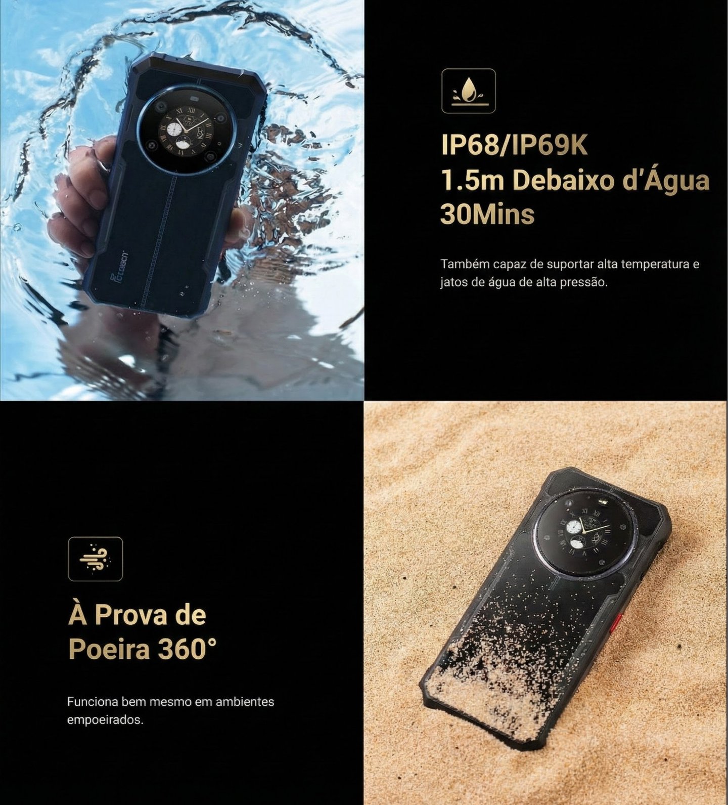 ✔ Resistente à água, poeira e impactos (IP68/IP69K)