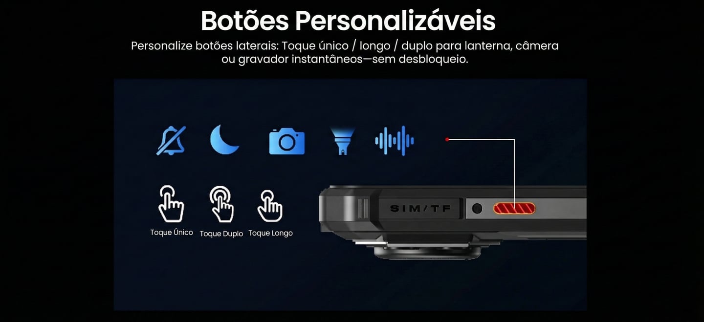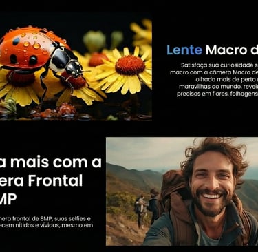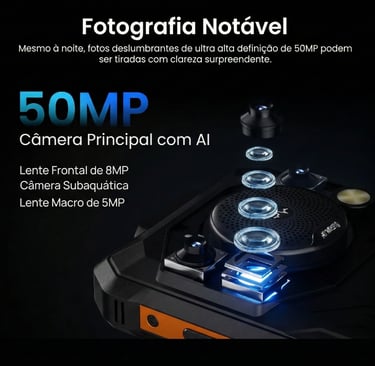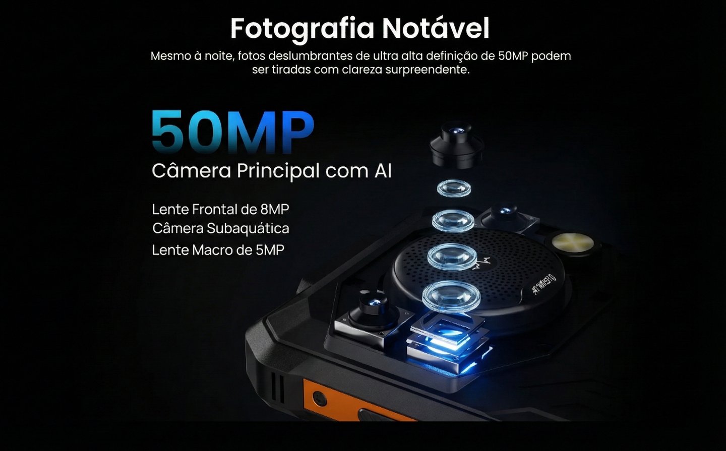✔ Câmera principal de 50MP + câmera frontal de 8MP + câmera macro de 5MP