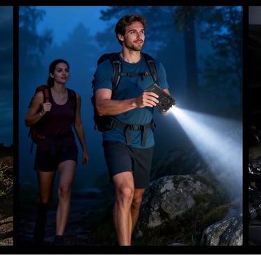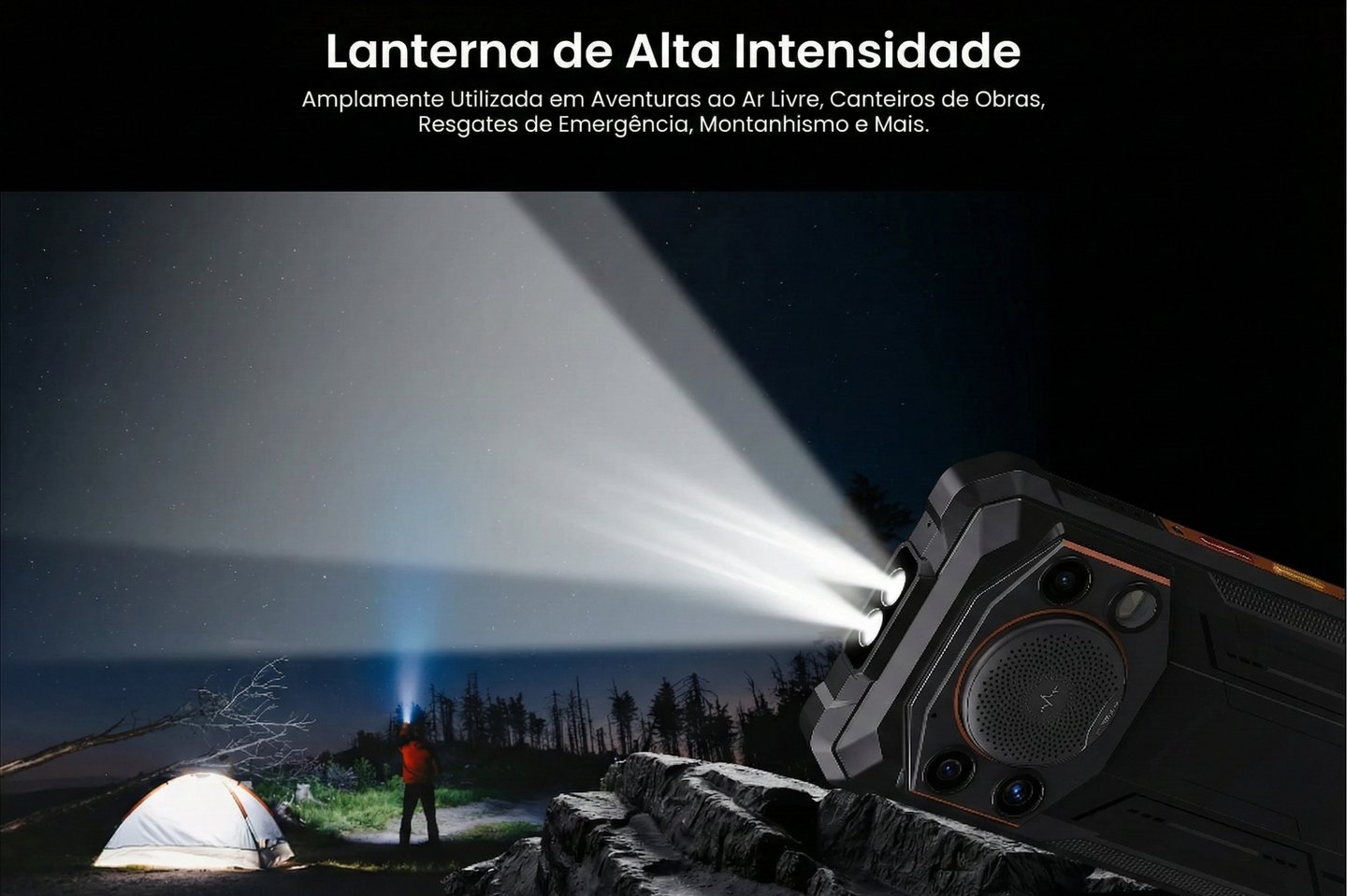 ✔ Lanterna LED dupla integrada com potência máxima de 120 lúmens