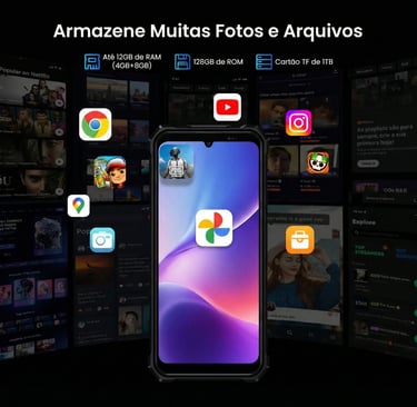 ✔ 12GB de RAM (4GB + até 8GB de RAM expansível) + 128GB de ROM