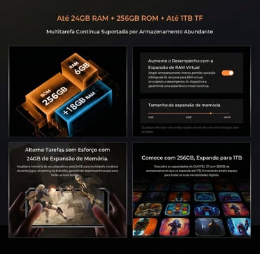 ✔ 6 GB de RAM (expansível até 24 GB Virtualmente)