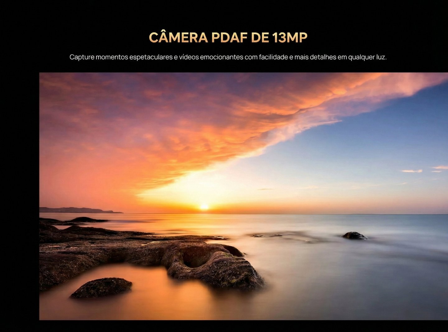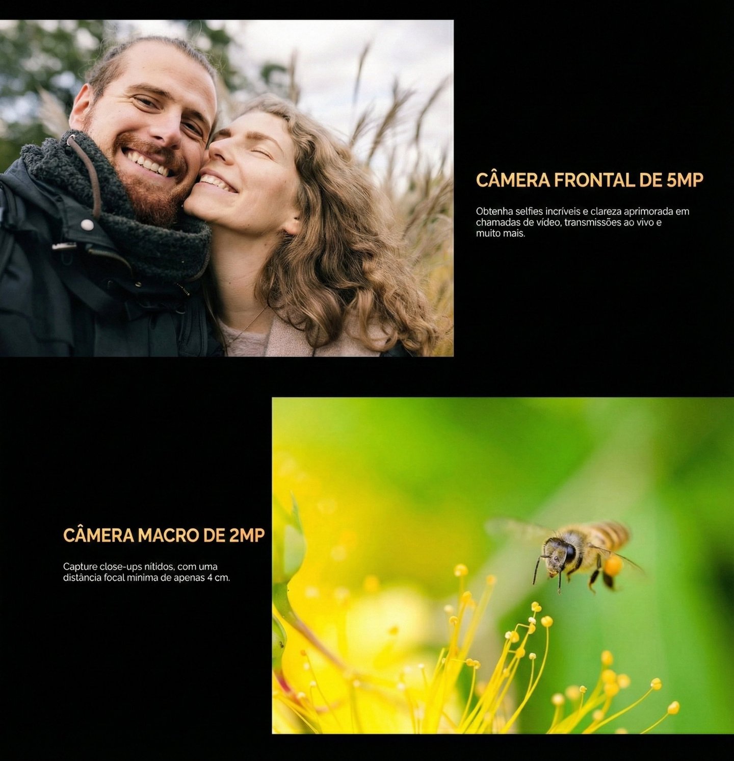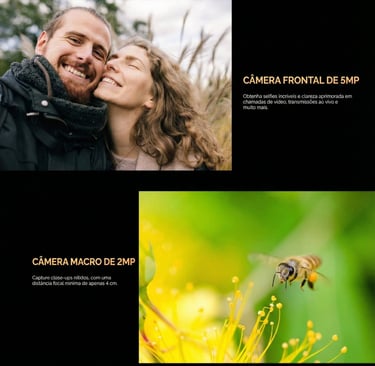 ✔ Camera Traseira 13 MP + 2 MP Macro