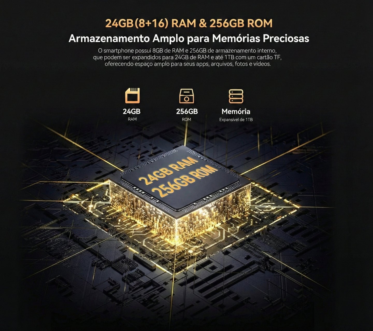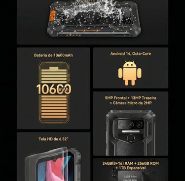 ✔ Processador - Octa Core , Unisoc Tiger T606 2x 1.6 GHz ARM Cortex-A75 Gráficos 6 GHz